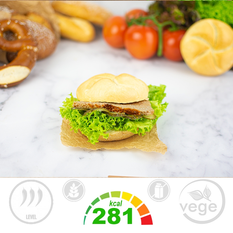 Składniki: Kajzerka [mąka PSZENNA, woda, mąka żytnia, drożdże, sól, olej rzepakowy, słód pszenny jasny], Pasztet, Ogórki kiszone, Mix sałat, Jogurt grecki, Majonez domowy (olej rzepakowy, żółtka JAJ, musztarda), Chrzan, Pieprz czarny, Sól.